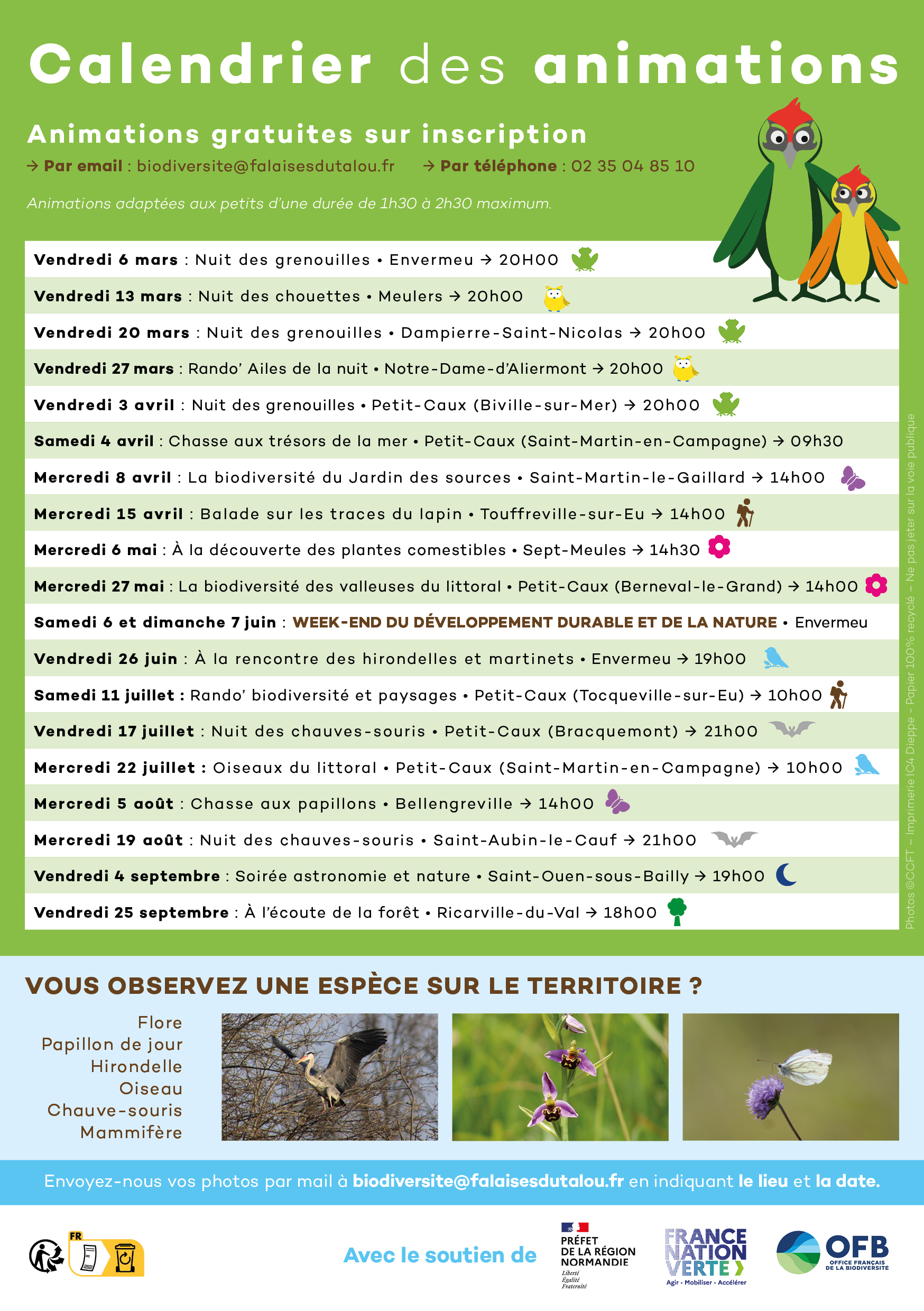 De 2021 à 2023, la Communauté de communes Falaises du Talou a réalisé une première démarche d’Atlas de la Biodiversité (ABC) sur l’ensemble de son territoire. Cette démarche soutenue par l’Office Français de la Biodiversité (OFB) a pour objectif d’améliorer la connaissance du projet Territoire Engagé pour la Nature (TEN).